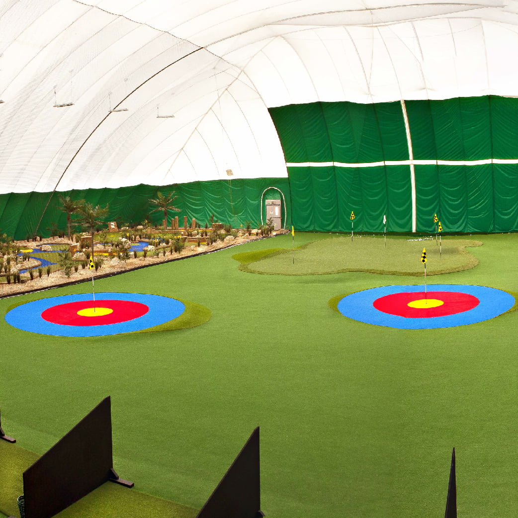 • Target Green Turf: High-contrast, high-spin-resistant turf used to create realistic target greens.